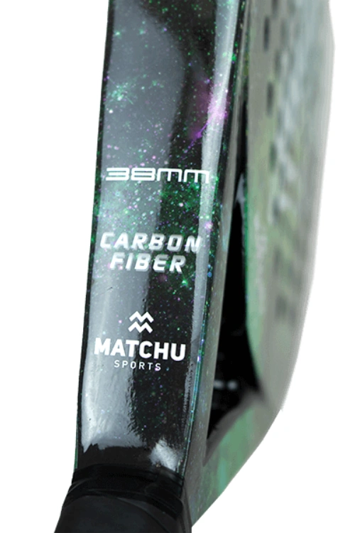 Dit racket is gemaakt met een frame van 100% carbon en een toplaag van glasvezel (fiberglass). De kern is gevuld met zacht EVA foam, wat zorgt voor een fijne mix van flexibiliteit en controle. Het materiaal zorgt ervoor dat je het spel goed kunt aanvoelen en de richting van de bal nauwkeurig kunt bepalen. Elk Bear racket wordt geleverd met een stevige zwarte draagtas, voorzien van het Matchu Sports logo.